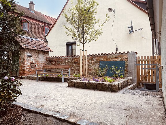 Nachdem im letzten Herbst eine Türe in die Gartenmauer gemacht wurde, konnte der Garten endlich direkt - ohne Umweg über den Nachbargarten - betreten werden. Am 24. April starteten die fleißigen Arbeiter vom Gartenbauamt und am 10. Mai wurde er fertig gestellt. Wir freuen uns schon sehr, mit unseren Besuchern, Gruppen - und auch als Mitarbeitende - den Garten in Zukunft zu benutzen und genießen.