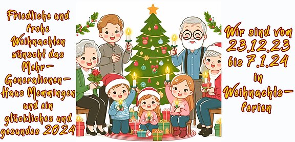 Das Team des MehrGenerationenHauses Memmingen wünscht allen Besucherinnen und Besuchern, Aktiven, Ehrenamtlichen und Netzwerkpartnerinnen und -partnern ein wunderschönes, friedliches und fröhliches Weihnachtsfest sowie ein glückliches und gesundes Jahr 2026!