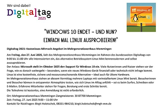 Anmeldung im MehrGenerationenHaus, unter 08331-984210 oder birgit.holetschek@~@mgh-mm.de