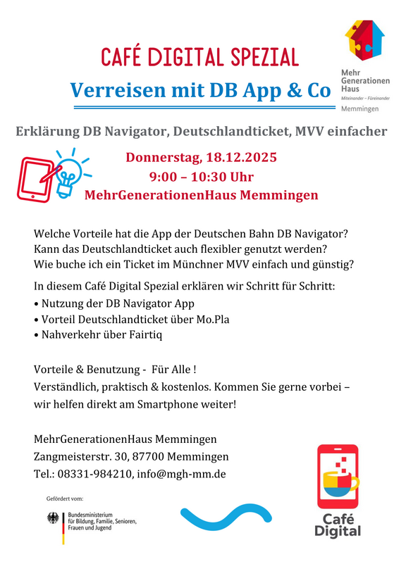 Café Digital Spezial: Verreisen mit DB App & Co - Erklärung DB Navigator, Deutschlandticket, MVV einfacher nutzen