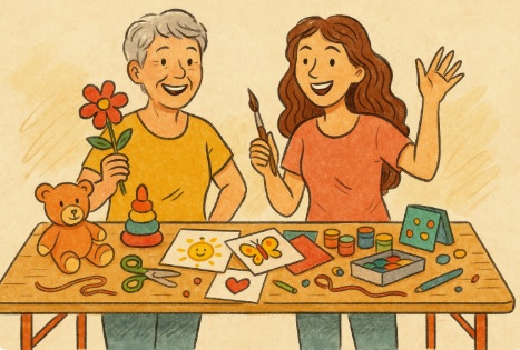 Angeboten werden Fundstücke aus dem Haus, Spiele, Bastelmaterialien sowie selbst gebastelte Werke der Gruppe. Besucherinnen und Besucher dürfen sich auf vielfältige Schätze und nette Gespräche freuen – gerne auch bei einer Tasse Kaffee.